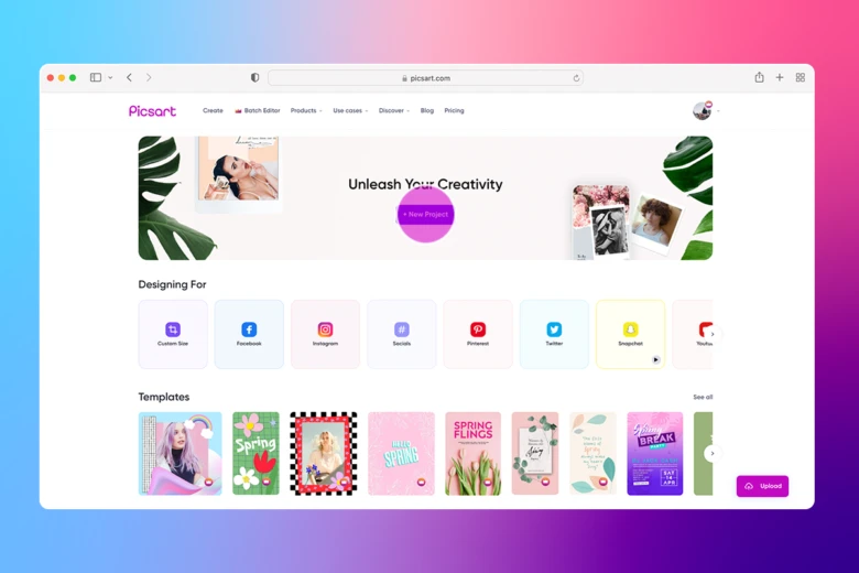 1. Open the Picsart web editor and click on New Project to get started.