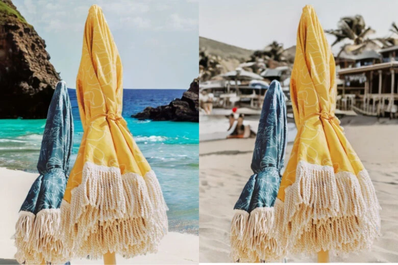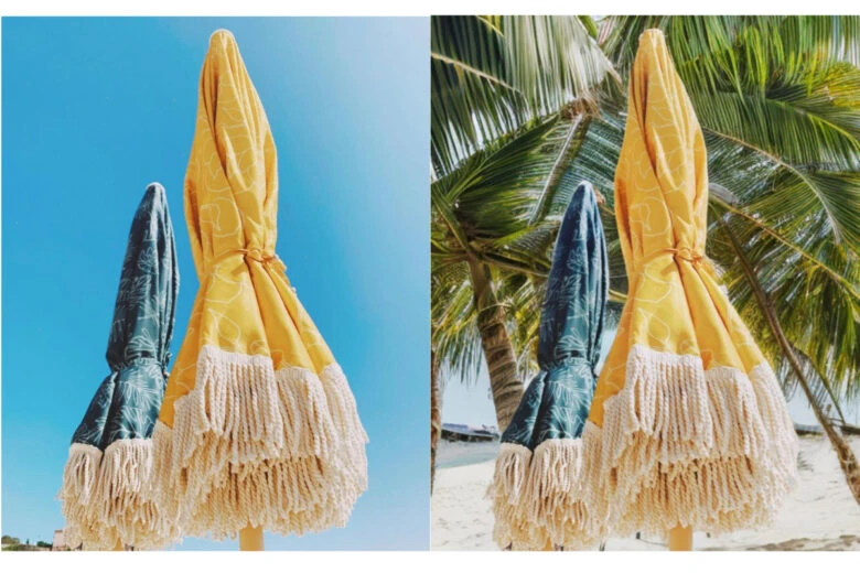 One of the coolest things about this tool is how quickly it can take take a single photo and turn it into endless variations so easily. @petrosyanllt3 used AI Background to put her umbrella product photos in various settings without trekking through the sand to get there.
