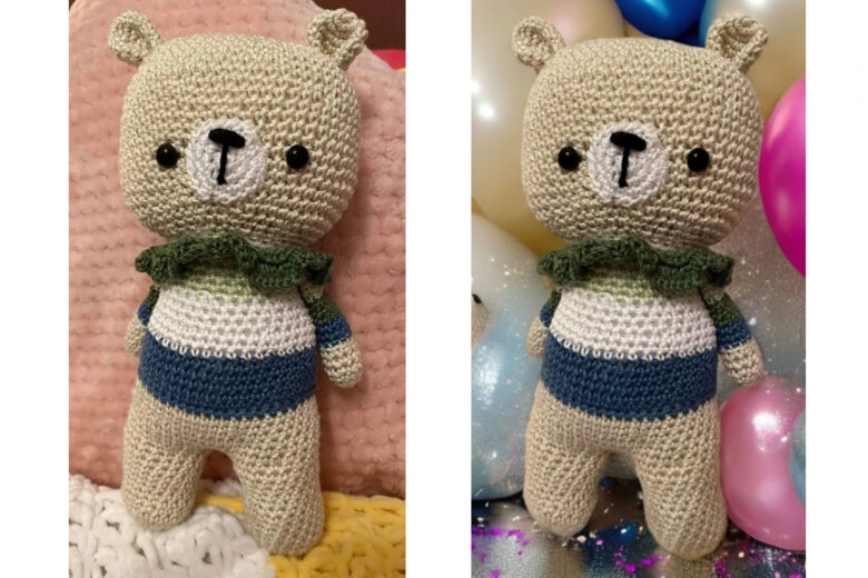With AI Background, it’s easy to take product shots from simple to festive and fun in just one tap. @novicenouns created new shots for his mom’s Etsy Shop where she sells handmade gifts. He took the photo on the left and added one of the backgrounds suggested by our technology, resulting in a fun balloon-filled background perfect for celebrating.
