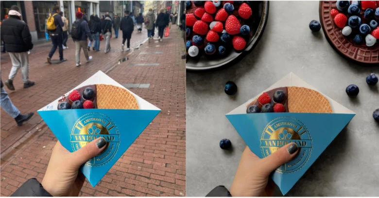 It can be hard to get the perfect food shot, especially when you’re on the streets surrounded by loads of other tourists. Recently, @astghik was in Amsterdam and decided to snap a photo of this waffle. She used one of the suggested backgrounds from the tool to take the shot instantly from the street to the studio.