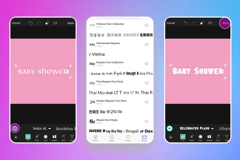 Browse the Picsart font collection to choose a baby font from a wide selection of premium and free options. If you’re not sure how to choose the right one for your design, check out this article for detailed instructions.