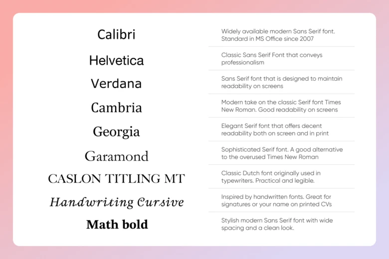 At the same time, however, these traditional fonts can feel overused and lead to applications not standing out. In more creative or modern industries, it’s better to explore styled fonts, as we do later in the article.
