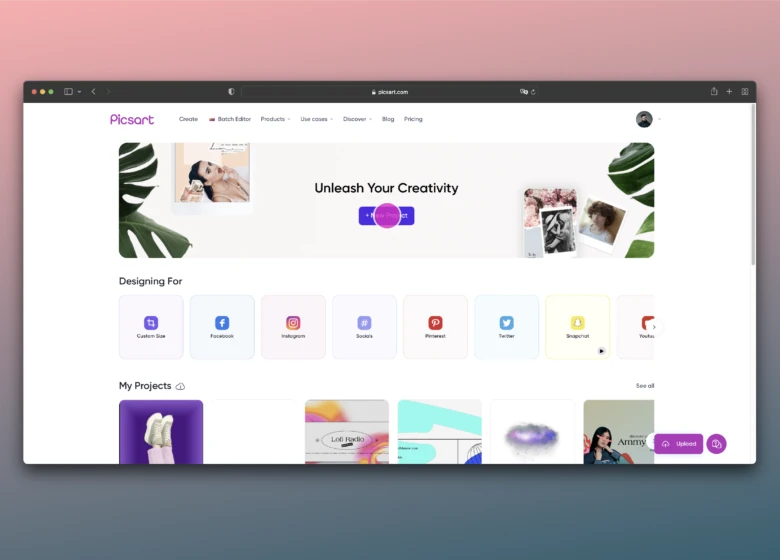 1. Open the Picsart Web Editor and click on New Project to start.