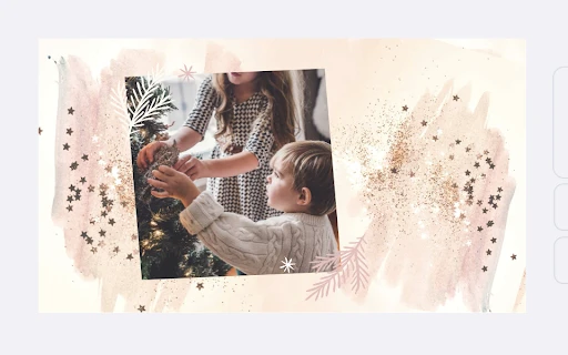 In the foreground, we also have holly boughs in rich burgundy, reminiscent of mulled wine and winter jams. The hue sticks to the color scheme but also contrasts nicely with the background. When you create your Christmas cover image, choose graphics that represent the season: ornaments, pine needles, strings of lights, and bows. Find the perfect sticker in the left-hand menu of the Picsart editor.