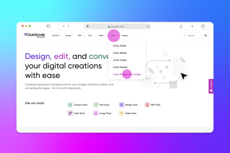 Quicktools is a set of free, standalone tools from Picsart that you can use for all of your photo editing needs. Whether you’re looking to convert files, resize images, or find the perfect color codes for your next design, we’ve got you covered with easy-to-use editing tools.