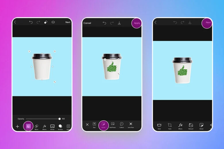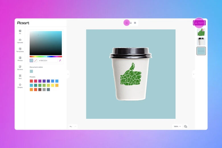 Want to create a custom design on your mobile device instead? No problem. You can do so with ease on the Picsart mobile app.