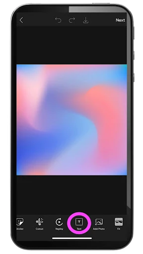 6. On the editing screen, choose Text from the menu below your canvas. Doing so will bring up a text box on your screen.