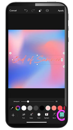 12. Now, you can also change other features of your text using tools like Bend, Highlight, and Stroke. In the image below, we applied a contrasting stroke – also known as an outline – so that the lettering stands out better against the background.