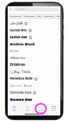 9. Now, at the bottom of the screen, you’ll see a heart icon that reads My Fonts. Tap on this option to open the custom fonts library you’ve downloaded.