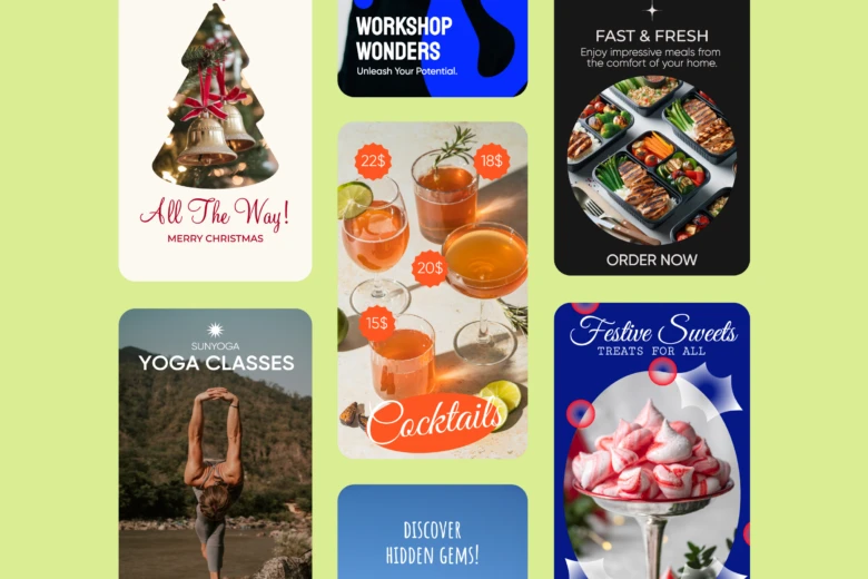 When posting Reels to Facebook, don’t start from scratch! Use one of the thousands of Facebook templates from Picsart. They’re professionally created and feature eye-catching headlines, stellar graphics, and compelling calls to action. You can easily edit them to match your style and aesthetic as well, drawing from our huge library of fonts, stickers, and shapes to match your vision.