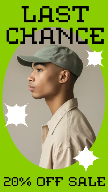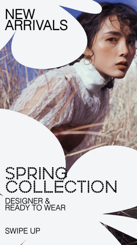 A flash sale is another great way to create urgency and encourage sales straight from your Instagram stories. Use this template to place images of your products or brand front and center and to catch eyes with funky shapes.