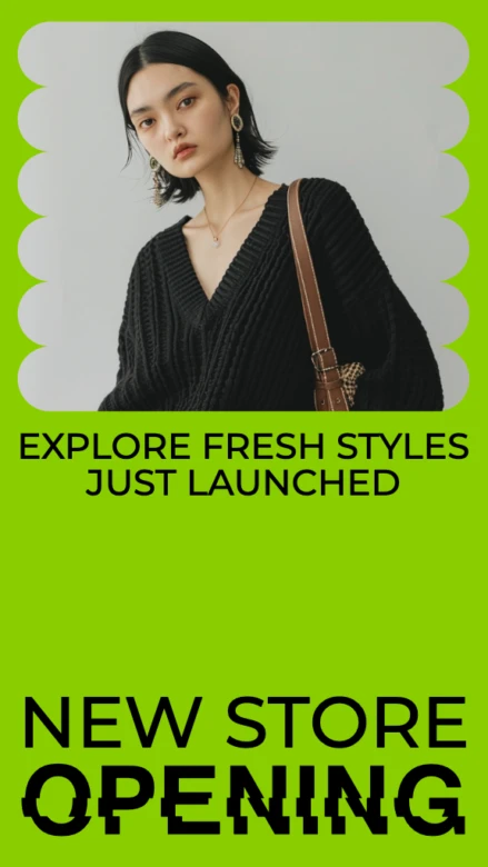 When your new store opens, you’ll want to make a splash online. This story template features bright colors and a cool distorted (but clear) text effect to grab attention. Just add your date of opening, location, name, and teaser photo to start generating a buzz.