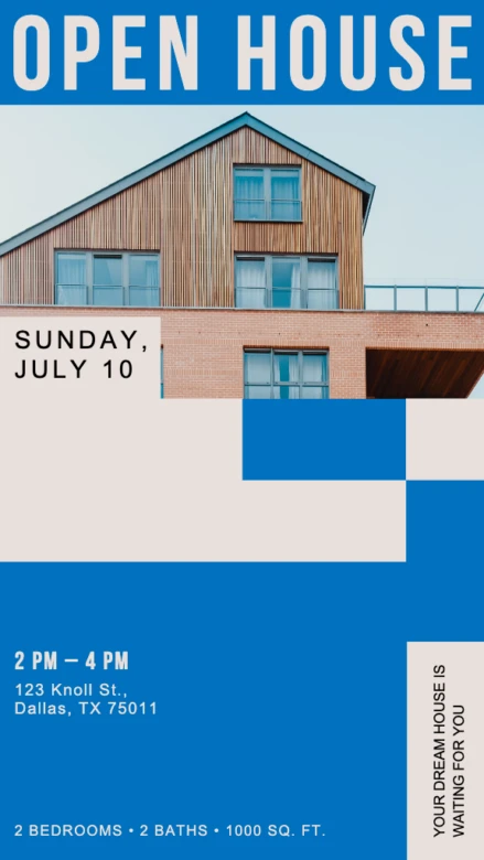 Instagram stories are a great way to generate interest in a new property listing. This template uses a traditional font for an elegant look that will attract potential buyers while keeping the focus on the home.
