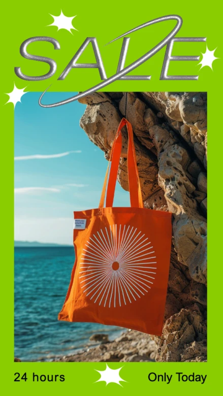 You can create a feeling of FOMO (fear of missing out) by running a sale on your Instagram story which times out after 24 hours. This template with its vivid colors and striking fonts is great for encouraging immediate action.