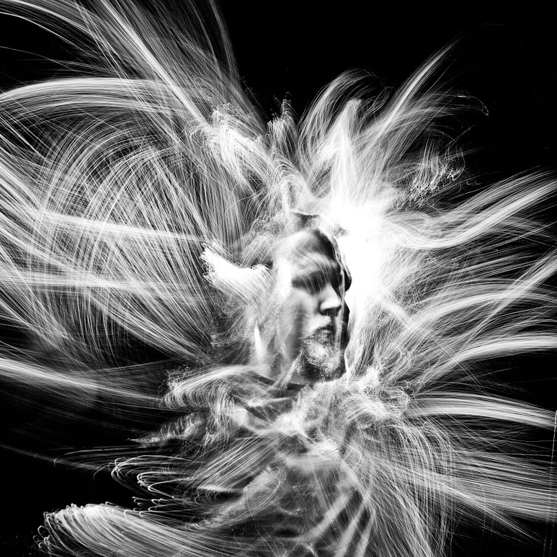 I always knew of the ability to create images with moving lights and long exposures. I didn’t begin to take interest until I found an article with some images of Picasso doing light painting drawings captured by Gjon Mili. I found light painting master Patrick Rochon in my research, and I recognized the potential for portraits to be unique and powerful. My first subject was myself.