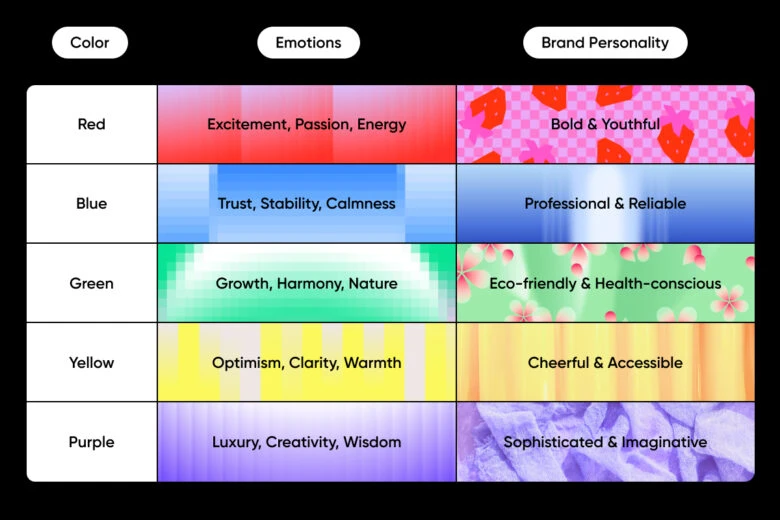 Here’s a breakdown of how different colors translate into emotional and brand signals: