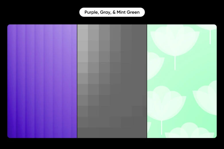 An unexpected combination that speaks to sophistication and innovation. Purple brings creativity and wisdom, gray adds professionalism and neutrality, and mint green introduces a fresh, modern touch. This palette is perfect for brands in technology, design, wellness, and forward-thinking industries that want to appear both cutting-edge and approachable.
