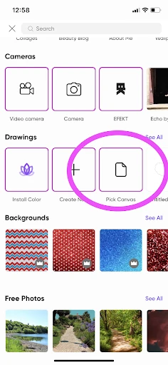 1. Follow the same steps given above to get your virtual canvas prepped on the Picsart app.