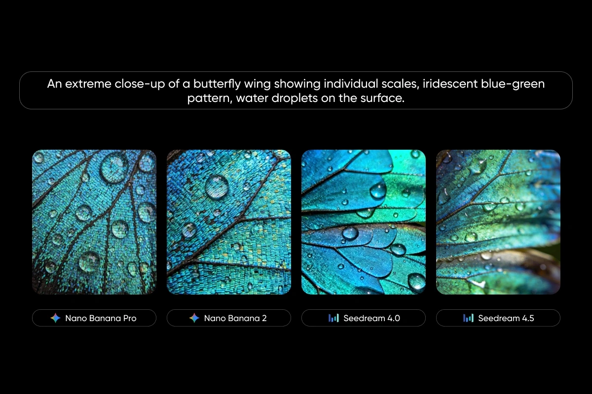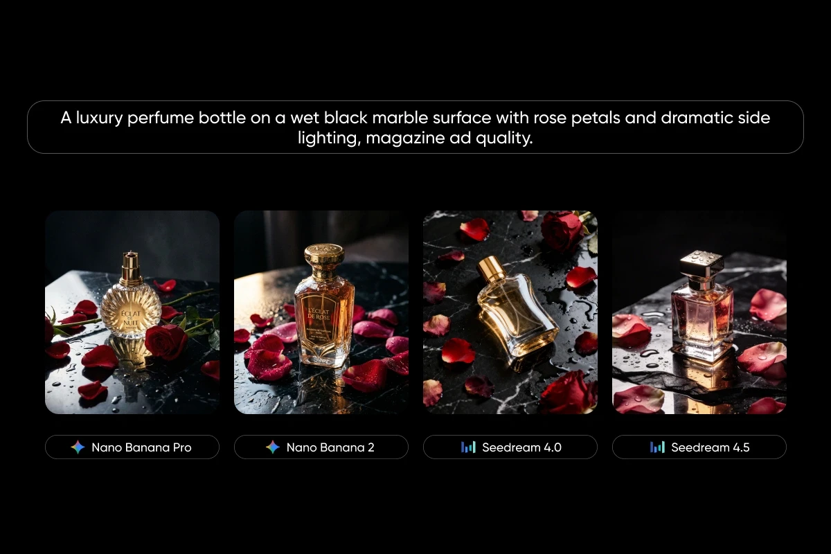 Nano Banana, developed by Google DeepMind, treats photorealism as the baseline. Faces hold up under scrutiny. Lighting behaves like actual light. Textures feel tangible enough that generated product shots could pass for studio photography. Seedream, built by ByteDance, takes a different angle entirely. It dominates in stylized visuals, multi-image consistency, and commercial layout work – the kind of output that goes straight into campaigns without heavy post-production.