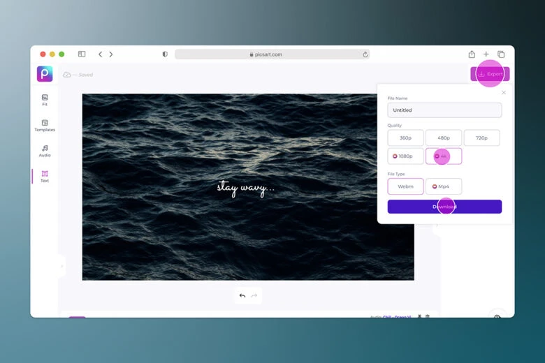7. Finish the edits required and click on the Export button to download your video. Be sure to choose the quality, file type and name the video appropriately.