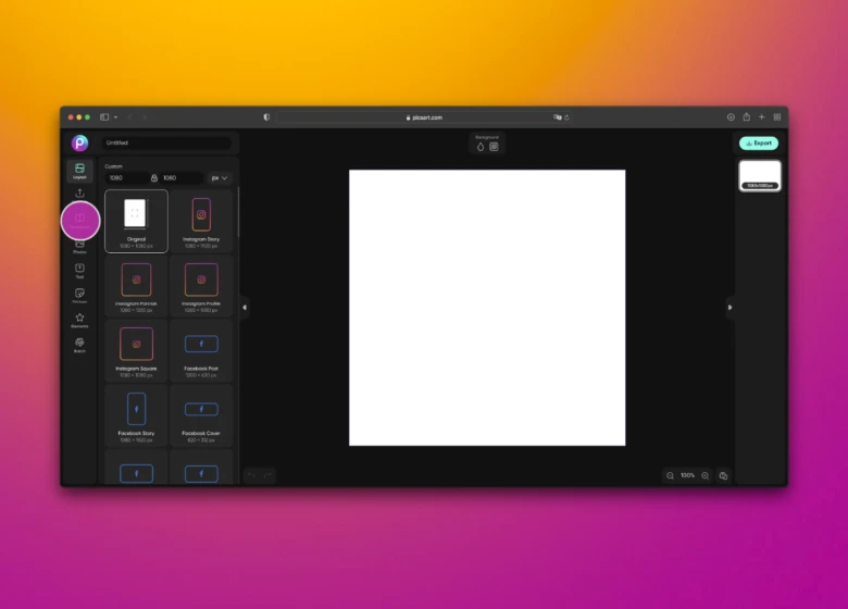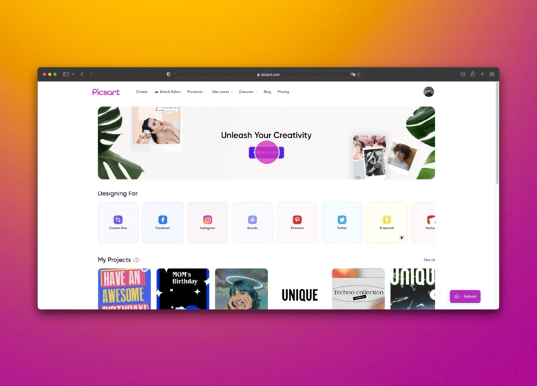 1. Abra o editor web do Picsart e clique em Novo Projeto para começar.