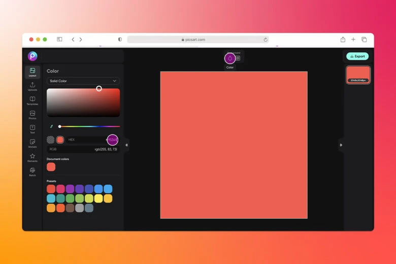 Red orange color is one of the best shades on the color chart if you’re looking to add enliven your design and make it really pop. Picsart makes it easy to experiment with any color.