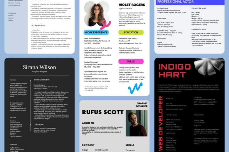 Rather than designing your resume from scratch every time you apply for a job, use resume templates to make you much more efficient. Picsart has dozens of professionally-designed resume templates that you can use as a starting point for your resume. These templates can save you time and effort, allowing you to focus on creating strong content rather than worrying about layout and design.