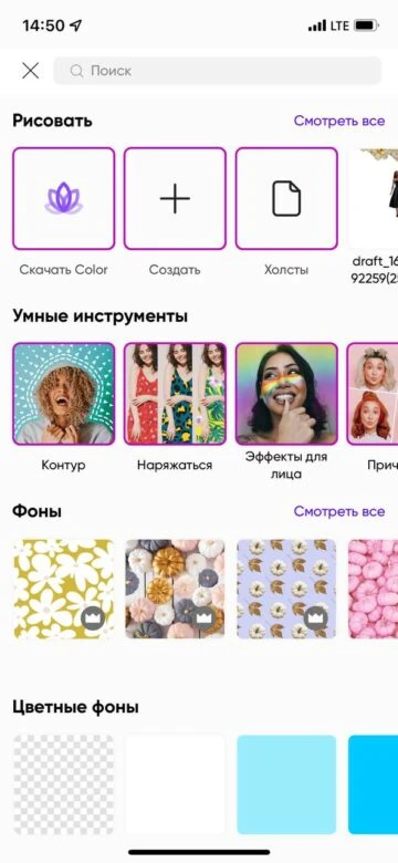- Заходим в приложение и выбираем “прозрачный фон”