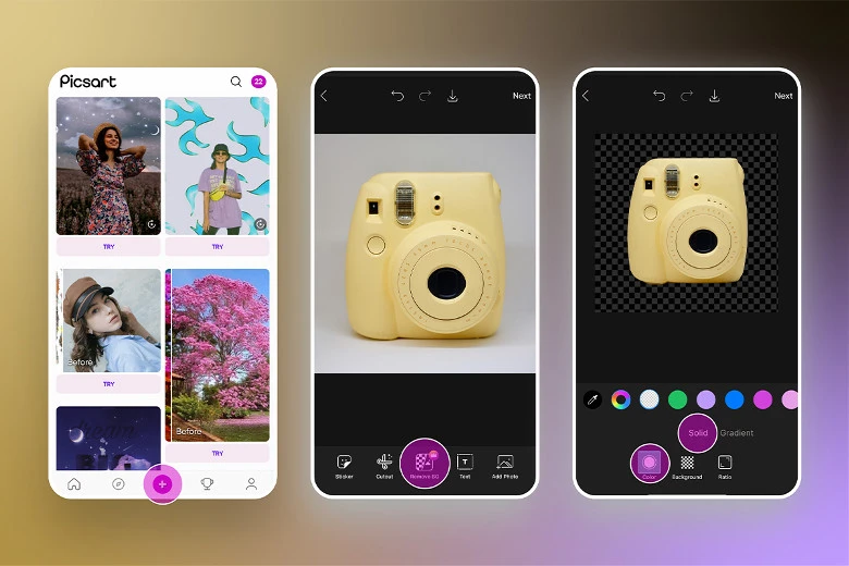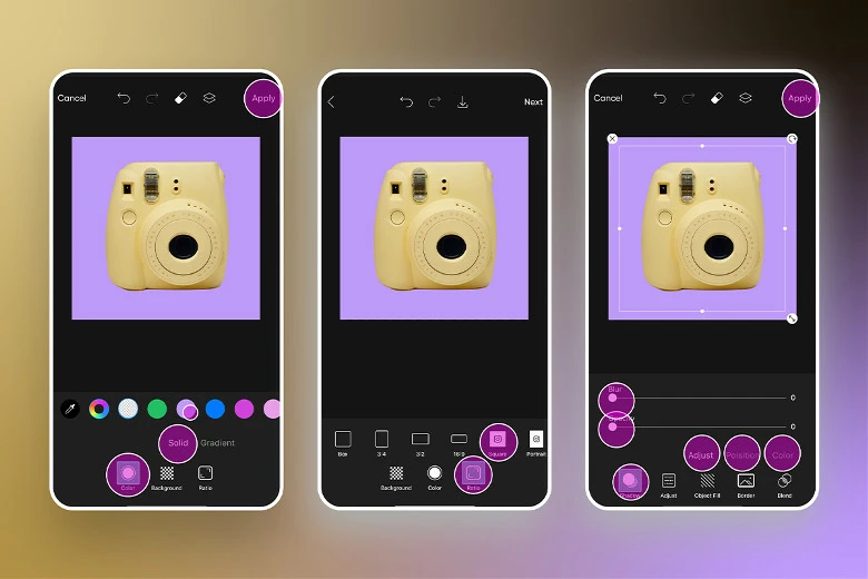 Этап 3: Большинство криэйтеров удаляют фон изображения, чтобы заменить его чем-то другим. Если вы хотите заменить задний фон на другой цвет, нажмите «Цвет» и выберите «Сплошной» или например «Градиент», чтобы выбрать новый оттенок для фона вашего изображения. Нажмите «Применить», когда закончите и все!