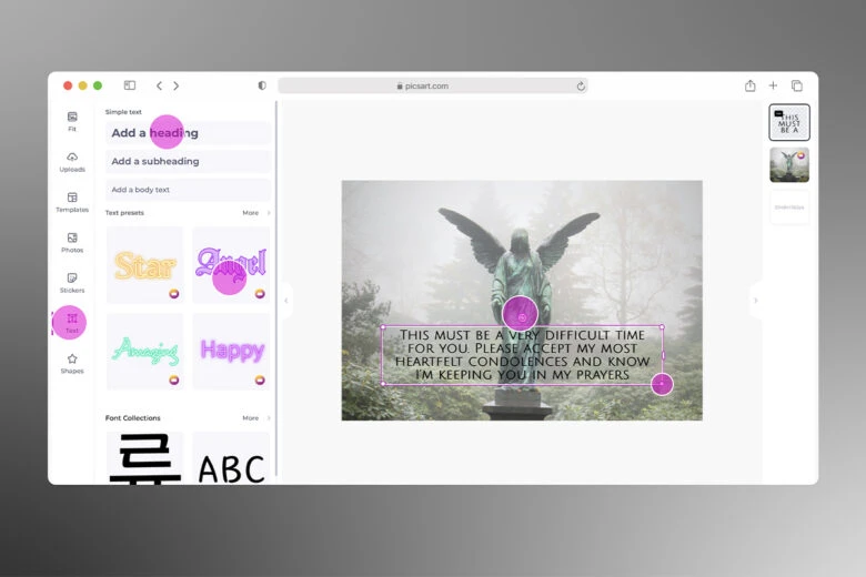 If you want to create personalized condolences cards on your phone simply:
