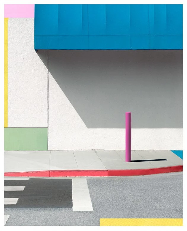 The works on show at the Australian Consulate are a selection from my most recent series – New Order. This series was really focused on reducing the LA landscape to flat planes of color. I was looking to take this idea of reclassifying ordinary urban spaces and distil it further by focusing more on the colors and surfaces themselves. When it comes to photography, if you choose to you stop utilizing depth, you are basically left with flat shapes, color, contour & texture – much like a Matisse cut-out – in employing this approach I found I had more freedom with composition. While the images remain portraits of the city, they also become more abstract in their intention – based on a true story but open to interpretation.