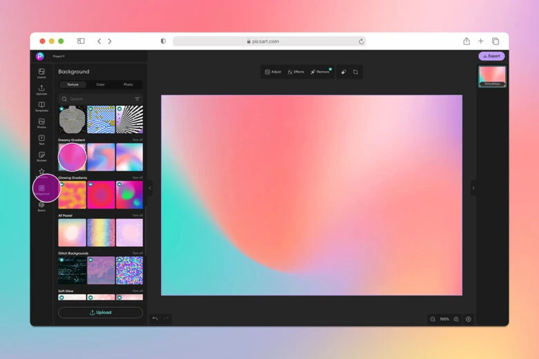 3. Browse the available options and click on your favorite to fill the canvas.
