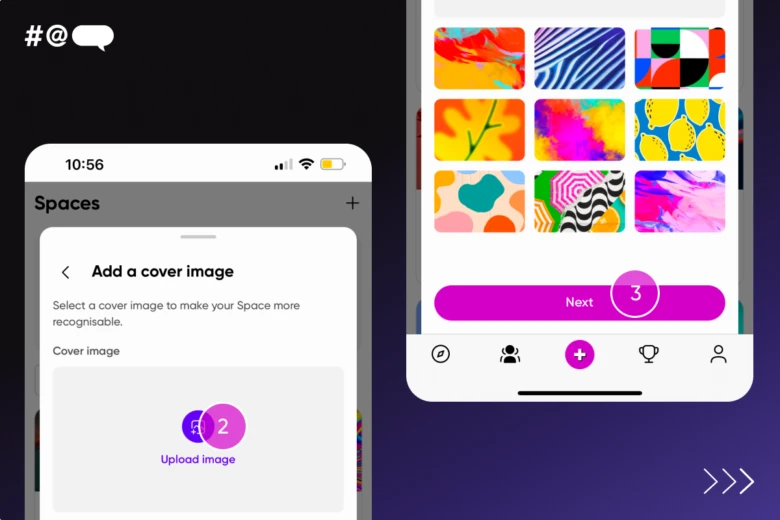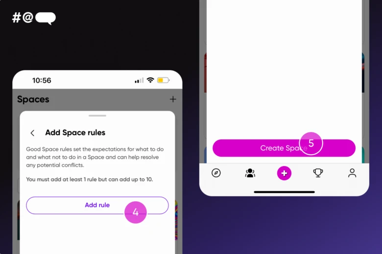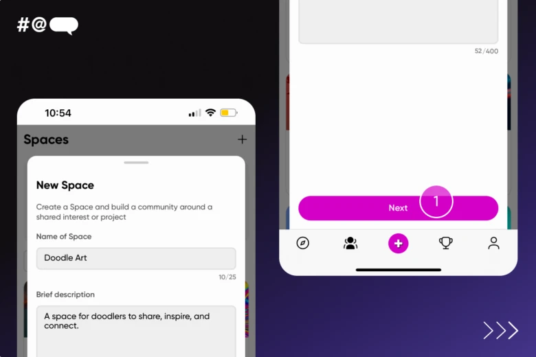To create your very own space, you simply press the plus button in the top corner of the Spaces section of the app. Once you’ve created your Space, you can dive into our Admin Playbook for all the nifty tips and tricks to create your Space. To find it, tap on the gear icon in the upper right corner of your Space! Plus, when you create a Space you’ll join our exclusive ‘Admin Headquarters’. It’s a private hub where you can exchange growth tips with experienced Space owners and provide feedback on tools and features. It’s all about growing together!