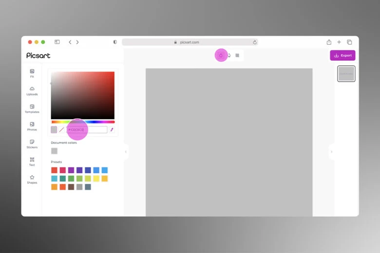 Step 1) Open the app and tap the purple + symbol to start a new design. Click on color backgrounds and select your preferred shade of silver. Use the above codes to help you choose.
