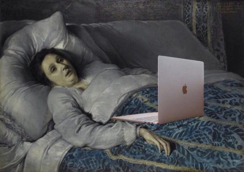 The Trend: This meme is both relatable and giggle-inducing. An image of the 1621 painting Young Woman on her Deathbed by Jacques-Louis David has been circulating with a laptop edited into the picture. Trending across social platforms, users have been adding their own captions, such as “Me when I’ve spent the day binging Netflix.” This trend plays into the concept of ‘rotting’ (a funny take on spending excessive time in bed) and revives the traditional style of image memes popular in the early 2010s.
