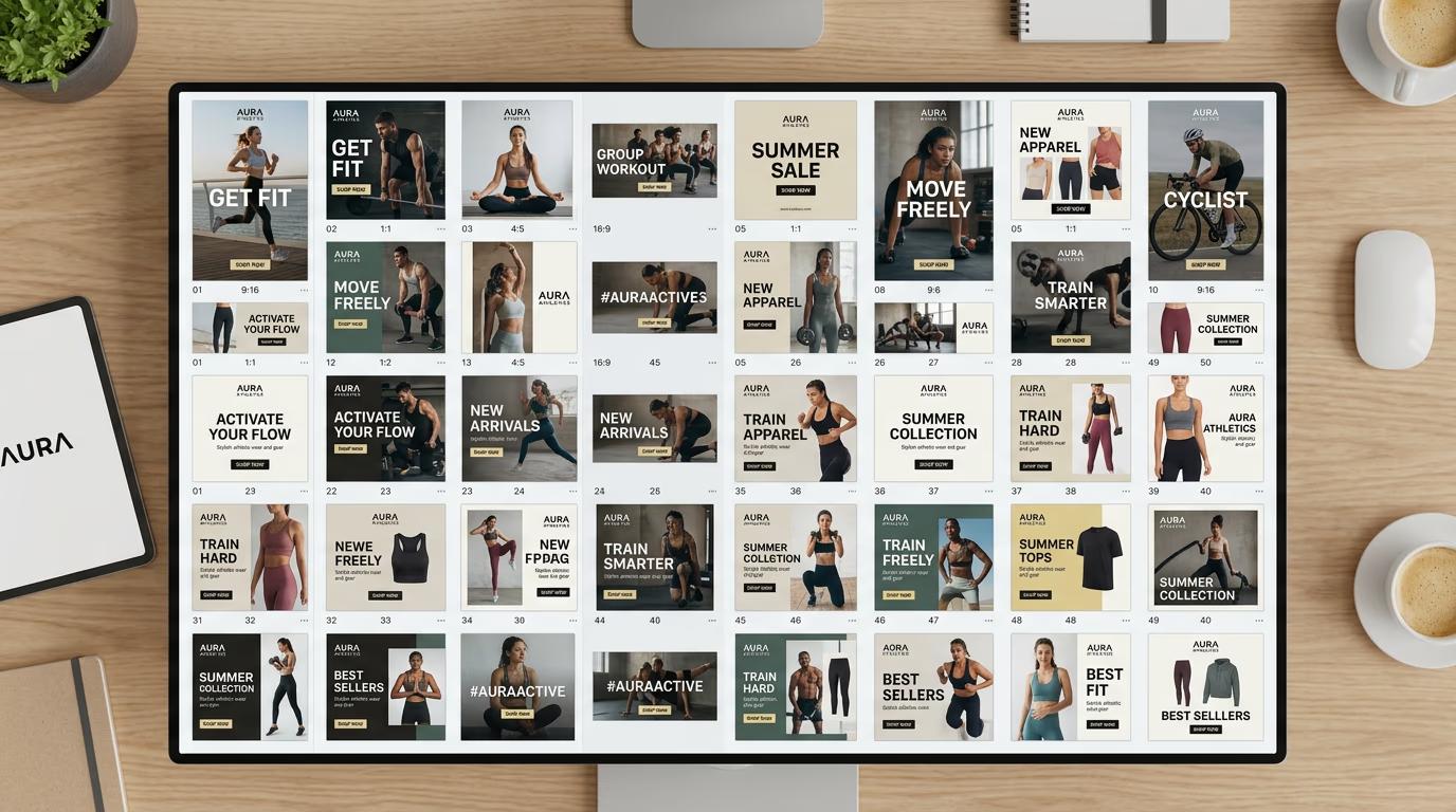 - Platform specs: Set safe zones and text size requirements for each platform (Facebook, Instagram, TikTok)