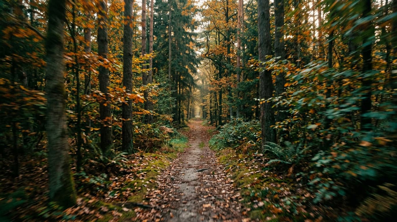 - Dolly: Camera moves forward through scene with depth (forest paths, hallways, anything with layers)