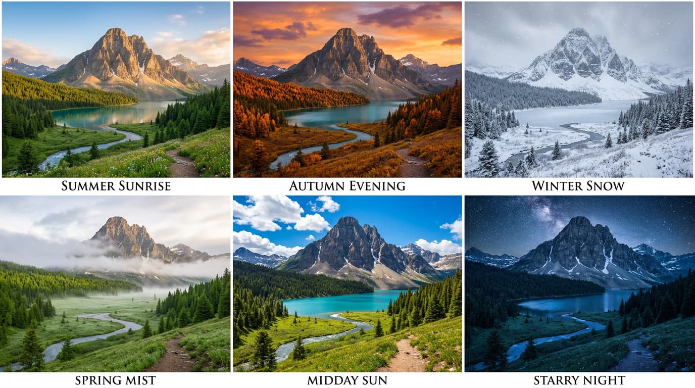 - Decide what to vary: colors, lighting, time of day, weather, or small details